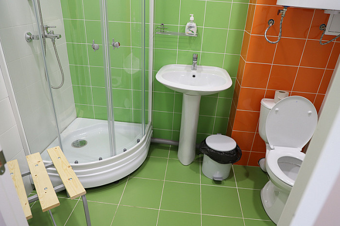 Дети заехали в новые корпуса 7 июня. Здесь устроены 4-х местные комнаты, в каждой из которых имеется санузел с душевой кабиной, холодной и горячей водой.