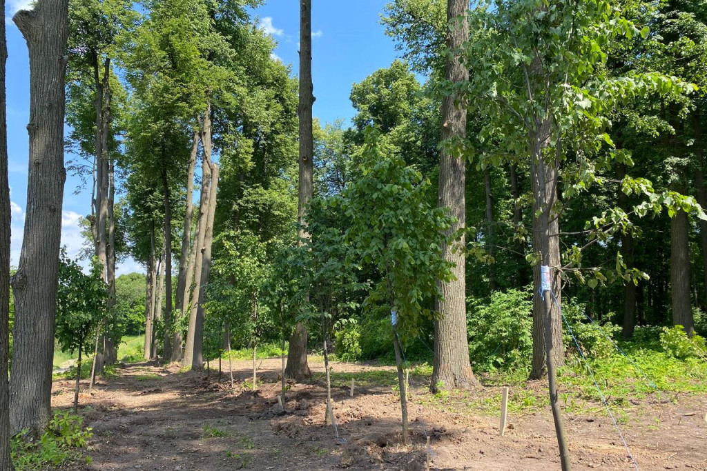В ходе работ уже очистили от поросли и удалили с корнем аварийные деревья. Часть лип сохранилась в хорошем состоянии, но, к сожалению, не все. Поэтому вместо старых деревьев здесь высадили липу мелколистную. Саженцам по 6-7 лет, их высота составляет 3-4 метра.