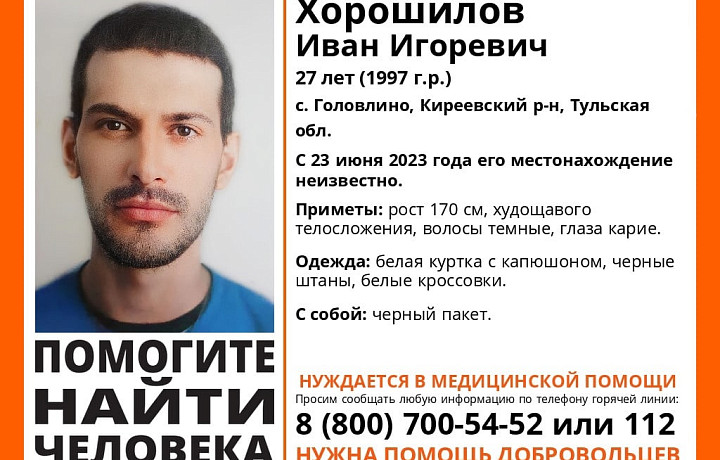В Киреевском районе Тульской области разыскивают 27-летнего мужчину. Об этом сообщили волонтеры.