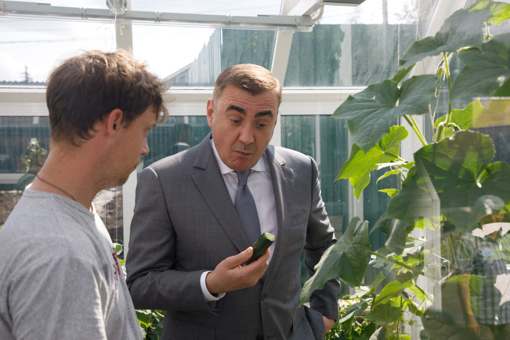 Алексей Дюмин осмотрел досуговую и спортивную площадки, теплицы и мастерские в рамках своего визита.