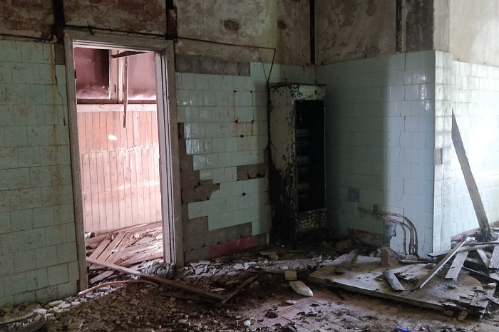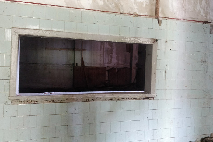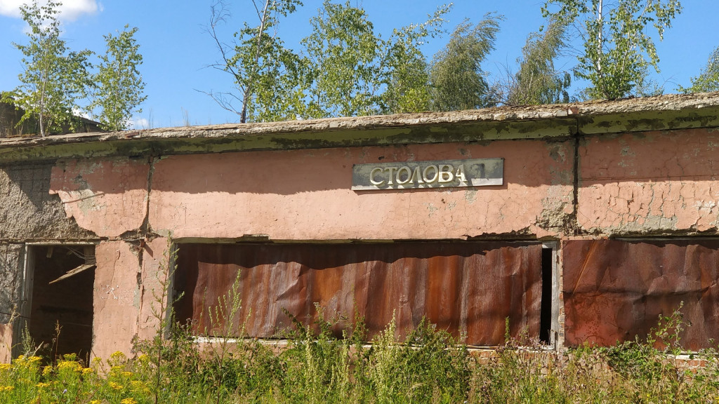 Если подъехать к церкви со стороны деревни, то дорога упирается в совхозную заброшенную столовую. Здесь сохранились предметы интерьера: раздаточная, раковина, шкафы и холодильники.
