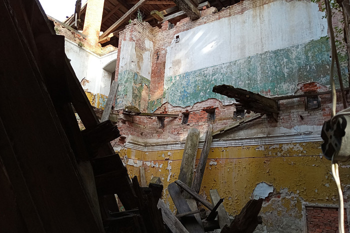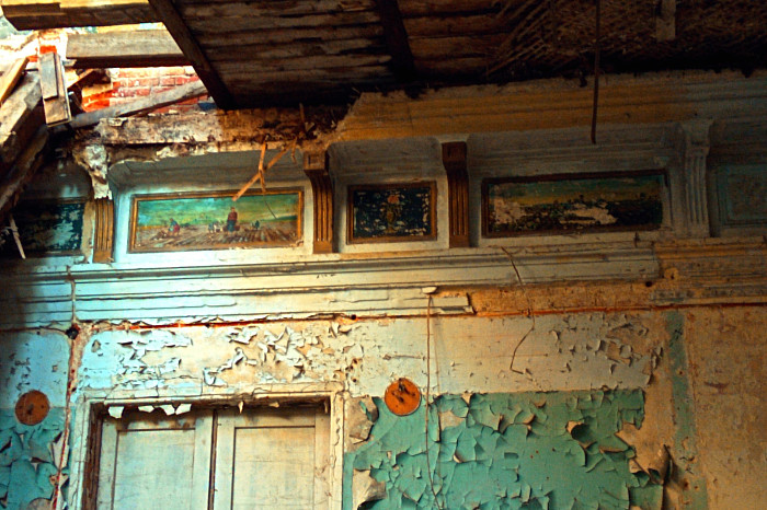 Сегодня от былой красоты остались только следы, напоминающие, что здесь когда-то был детский дом: разрисованные цветами и грибочками стены, пейзажные картины и даже фотография Красной площади в Москве.