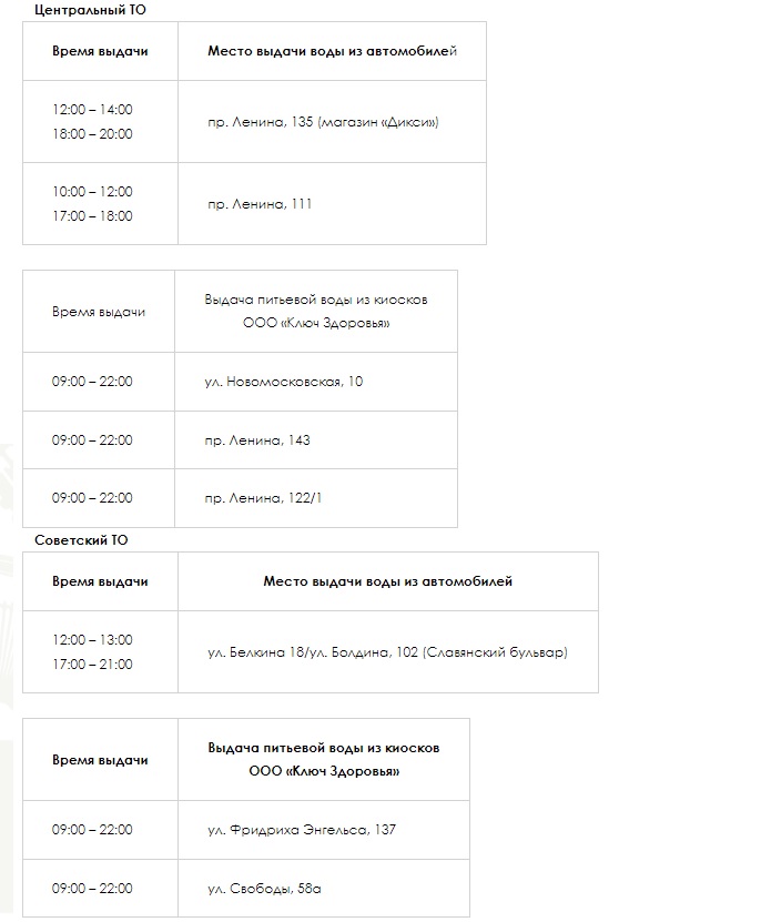 Туляков просят заранее запастись водой, кроме того, для жителей трех указанных округов будет организована бесплатная раздача питьевой воды. С адресами раздачи можно ознакомиться в таблице ниже.