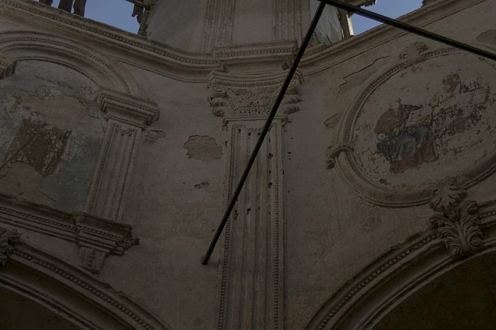 - Чтобы увидеть самое интересное, достаточно взглянуть вверх под расположение купола. В храме каким-то чудом сохранилась не только лепнина, но и росписи с ликами святых и различные библейские события, – рассказывает сталкер.