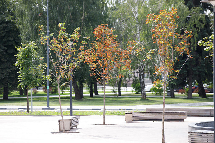 Наверное, пристальнее всего жители оружейной столицы следят за деревьями, высаженными в этом году на проспекте Ленина. Растения здесь в отличном состоянии, несмотря на приближающуюся осень. Они стойко перенесли и 30-градусную жару.