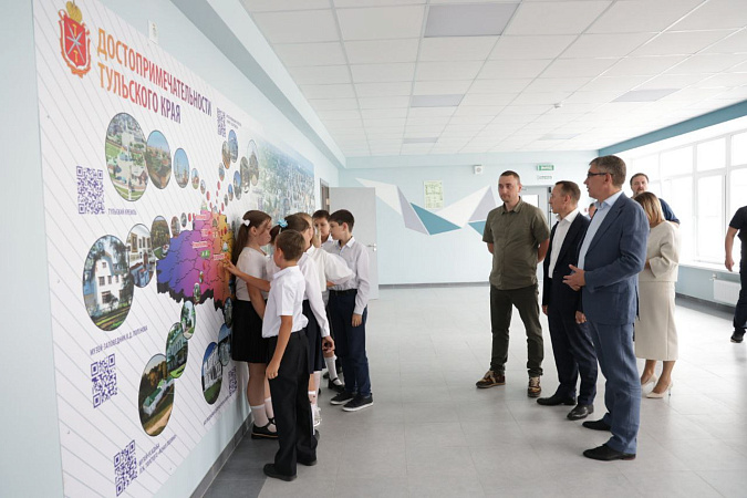 Помимо этого, в школу закуплены учебники, соответствующие российским государственным образовательным стандартам. В здании оформлены тематические пространства, оформленные в символике Российской Федерации, известными историческими личностями, достопримечательностями и великими уроженцами Тульской области.