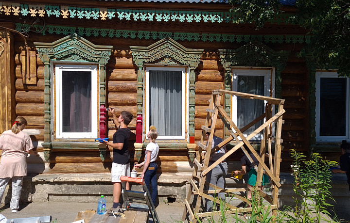 На объекте по улице Тургеневской проводят покраску и восстановление деревянных элементов утраченной резьбы.