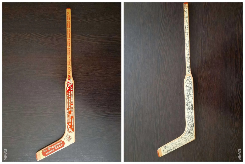 Сам продавец называет клюшку уникальной, ведь на ней удалось разместить целых 67 автографов советских хоккеистов. Они были 17-кратными Чемпионами мира, а также пятикратными победителями Олимпийских игр.