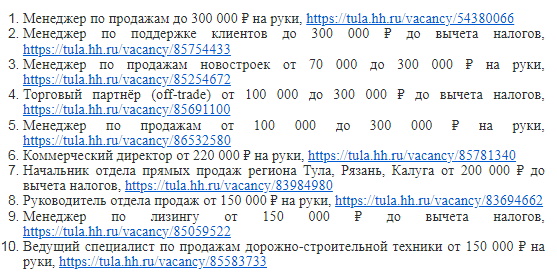 Так, лидером в списке стала должность менеджера по продажам. Туляки на этому посту смогут зарабатывать до 300 тысяч рублей за ведение клиентов, покупающих недвижимость в разных городах России, и консультации.