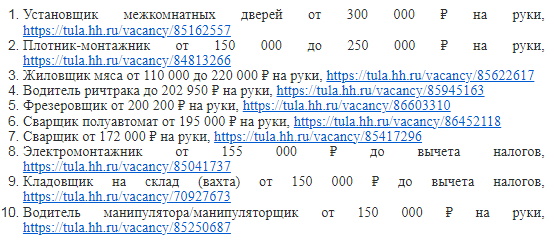 - Стал известен ТОП-10 рабочих сфер в Туле с наибольшим спросом в сентябре 2023 года.