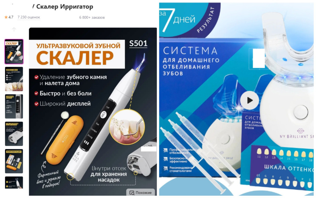 В интернет-магазинах можно найти и «наборы домашнего стоматолога». Среди предлагаемых товаров: наборы для домашнего пломбирования, аппараты для отбеливания зубов и скаллеры. Использовать все это в домашних условиях – опасно.