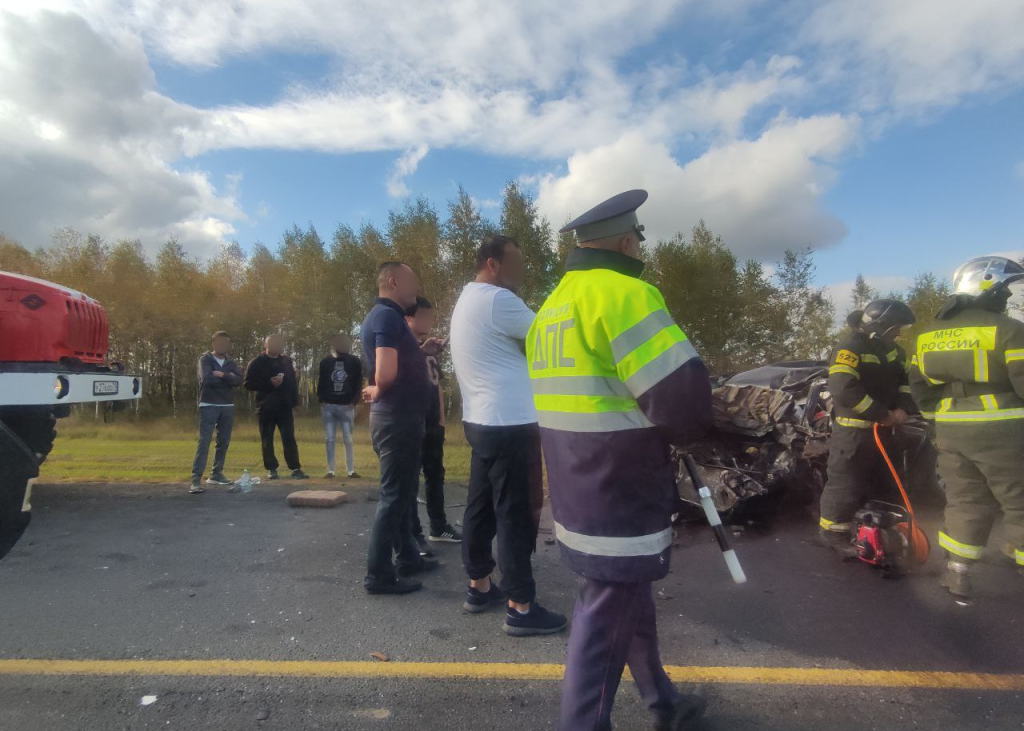 На месте аварии работают спасатели, которые готовятся использовать оборудование для резки металла. Кроме того, на месте находятся медики и сотрудники Госавтоинспекции.