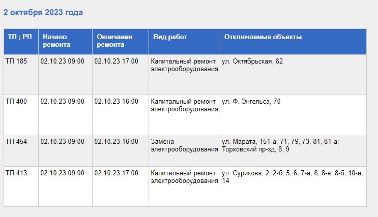 Так, с 09:00 до 16:00 электроэнергии не будет по следующим адресам: