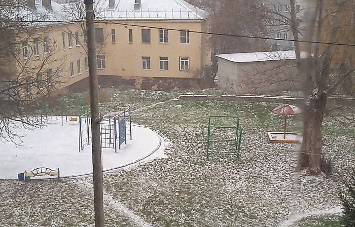 В telegram-канале «Тула с огоньком» горожане выложили снимки снега, лежащего на детской площадке в областном центре.