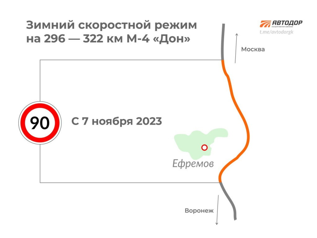 Теперь по участкам М-4 «Дон» со 170-го по 193-й километры и с 296-го по 322-й километры в Тульской области максимальная скорость движения автомобилей составит 90 километров в час. Прежний скоростной режим вернут в апреле 2024 года.