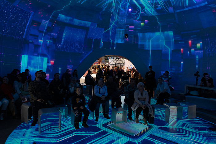 Также на стенде организовано множество интерактивных развлечений. Гости могут записать песню или послание с помощью студии звукозаписи и микрофона завода «Октава».