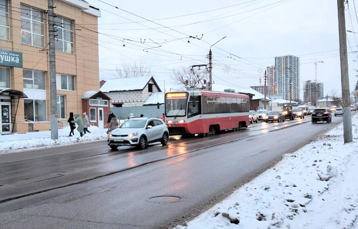 На улице Оборонной в Туле встали трамваи из-за застрявшей на путях иномарки