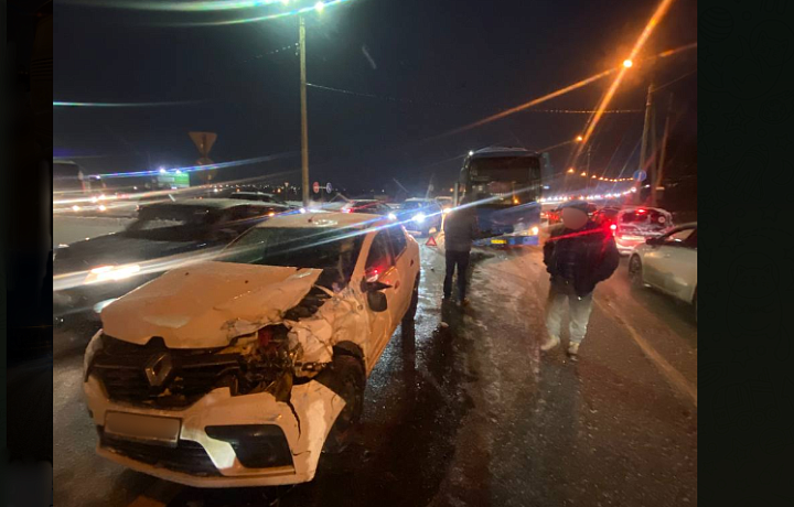Участниками ДТП стали легковой автомобиль марки Renault и автобус. По данным источника, водитель легковушки выезжал со стороны улицы Карпова по направлению к поселку Молодежный, и не уступил дорогу другому движущемуся средству.