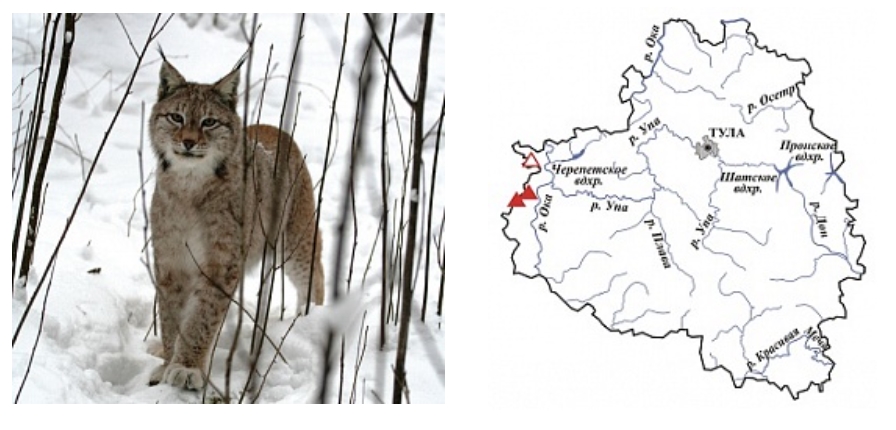 Согласно Красной книге Тульской области, к началу XX века рысь в регионе уже была истреблена, но хищник из Калуги забредает на территорию Суворовского и Белевского районов.