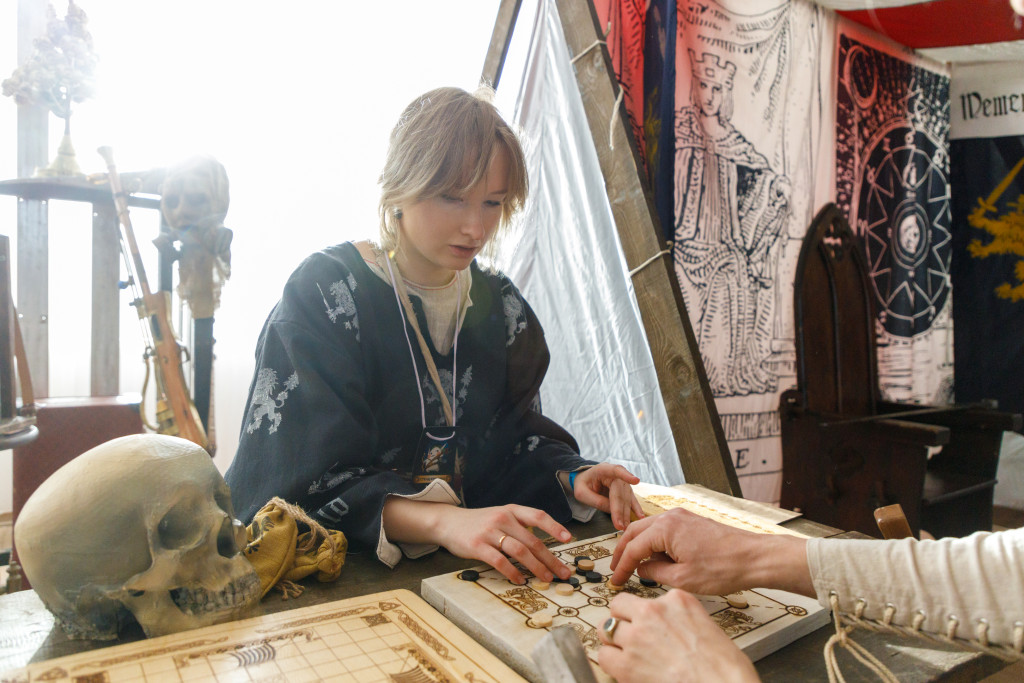 На фестиваль ребята привезли дальдозу, мельницу и тавлеи – это игры того времени. О них рассказала Мария:«Хочется, чтобы больше людей узнали о нашем клубе – поиграли в настольные игры, приобщились к средневековой атмосфере. Может кто-то из участников фестиваля станет еще одним членом нашей команды – будем вместе ездить на ролевки и заниматься фехтованием», — говорит Кирилл.