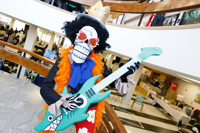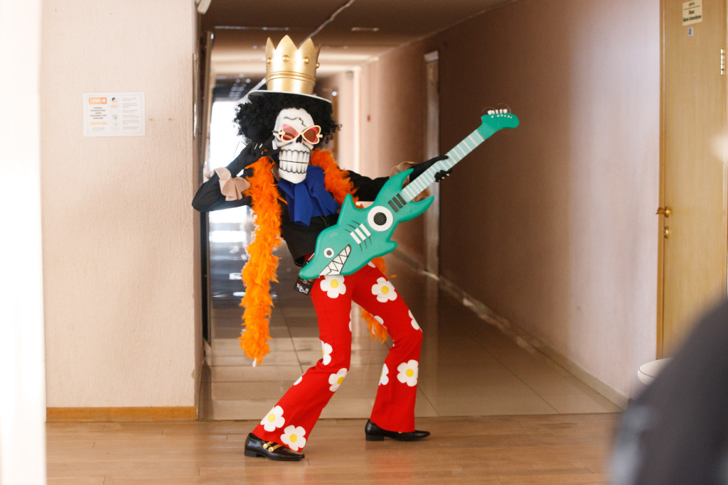 Костюм девушка делала частично сама, а некоторые детали заказывала. Например, механизированная маска ехала к ней из Перми. Гитара же делалась из обычных строительных материалов – утеплителя и деревянной рейки. По словам участницы, костюм обошелся в районе 12 тысяч рублей.«Это аниме очень вдохновляющее, в нем много экшена. Брук – колоритный персонаж, который был живым человеком, но после смерти его душа вернулась в скелет», — отмечает Risa.