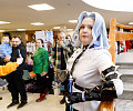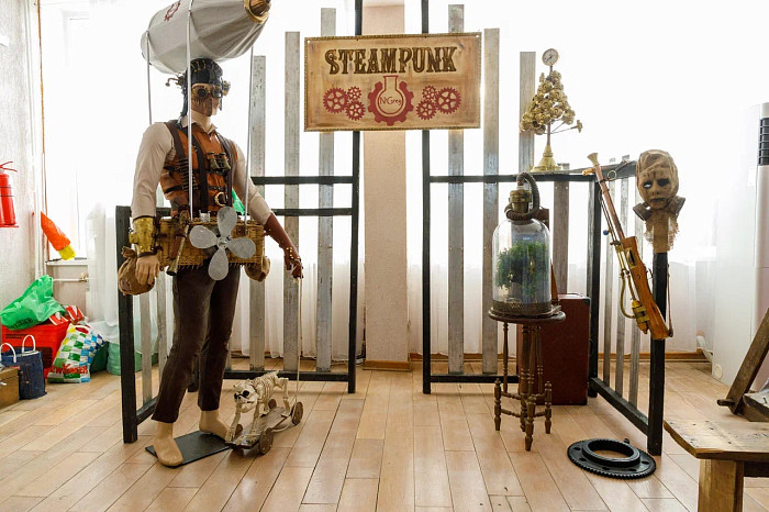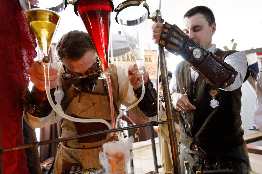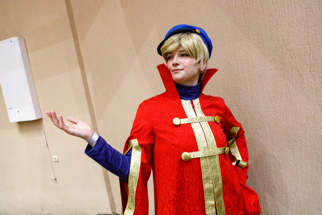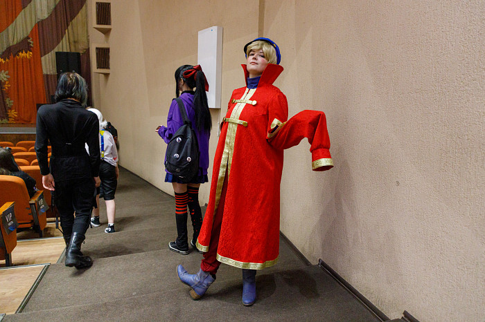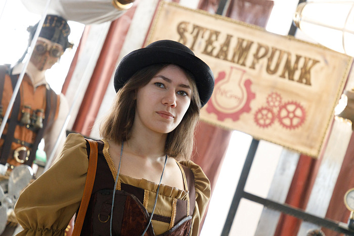 Увидеть на фестивале можно было и персонажей из русских мультфильмов. Ри приехала из Москвы в образе «Вовки в Тридевятом царстве».«Почему бы нам не рассказать любителям аниме о теме стимпанка, учитывая, что в Японии всегда были очень продвинутые технологии», — говорит Сергей.