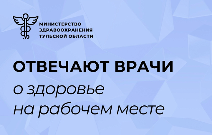 Специалист расскажет тулякам о здоровье на рабочем месте во время прямого эфира из серии «Отвечают врачи». Об этом сообщает пресс-служба министерства здравоохранения Тульской области.