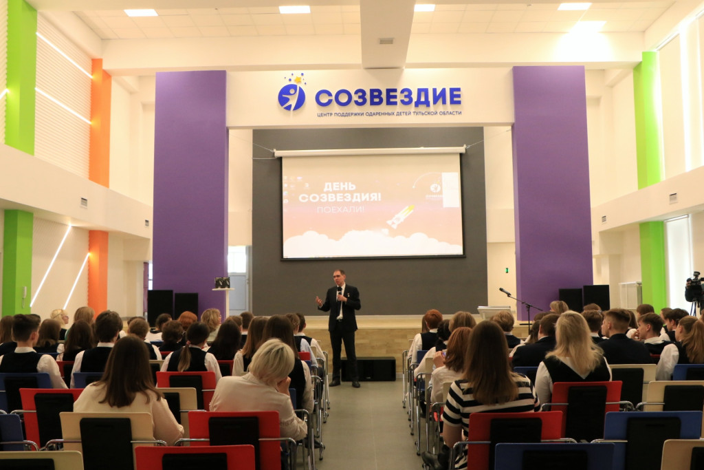 Во встрече со школьниками принял участие представитель Фонда Мельниченко, Герой России, летчик-космонавт Сергей Волков. На ней преподаватели и воспитанники «Созвездия» рассказали о своих достижениях и о тех возможностях, которые дает талантливым детям Центр. «Поддержка талантливых детей является нашим главным приоритетом. Без этого немыслимо развитие нашей страны. Уверен, что Центр “Созвездие” станет одним из флагманов дополнительного образования в Тульской области», — отметил Сергей Волков.