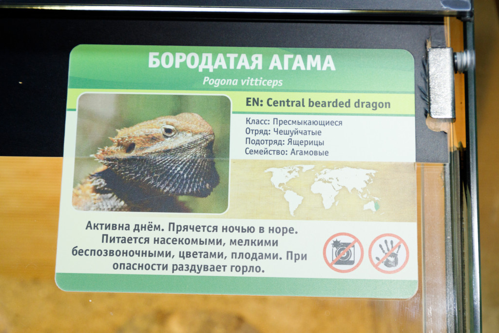 «Бородатая агама – это один из популярных террариумных питомцев во всем мире. По большей части такие ящерицы лояльно относятся к человеку, запоминают его, попрошайничают. Людям нравится, когда животное на них как-то реагирует. Этот питомец активен именно днем, его можно брать в руки, они в целом беспроблемно относятся к контактам», — объясняет Дарья Змеева.