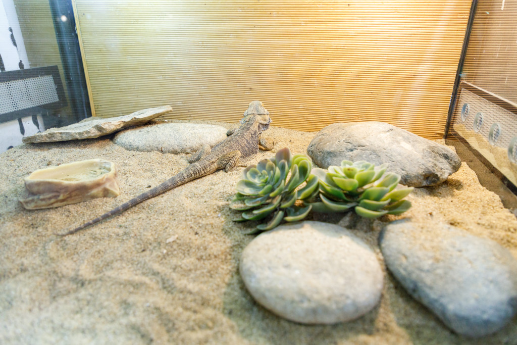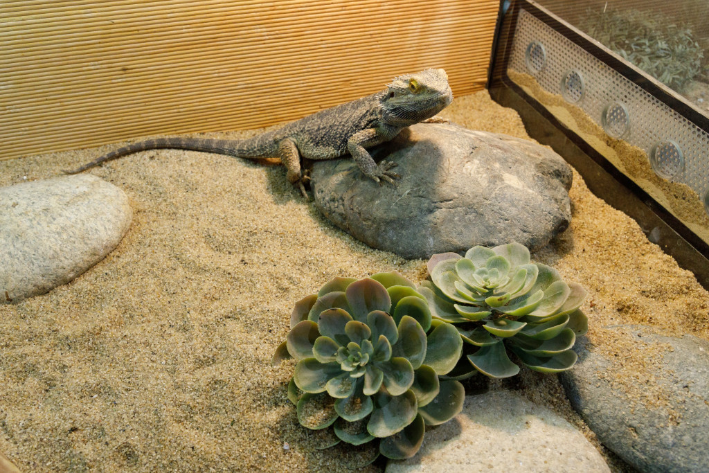 «Обязателен обогрев террариума, то есть верхняя точка прогрева у них до 40 градусов. Нужен ультрафиолет, причем с индексом 10-12. Декор и укрытия внутри террариума делаются по желанию. Это активный питомец, которому, естественно, хочется где-то лазить», — уточняет Дарья Змеева.