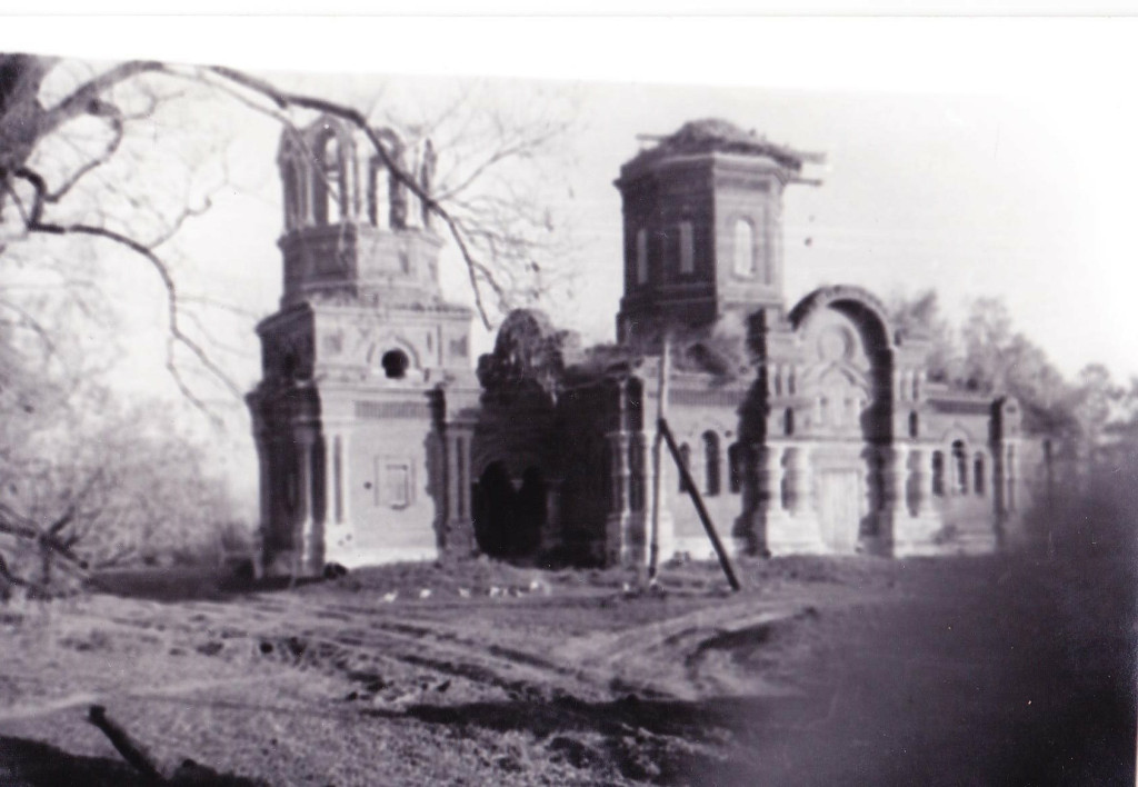 «Колокол был снят и переплавлен то ли на пушки, то ли на оружие.Помещение храма использовалось как мастерская и для других хозяйственных целей. А в 1941 году в Лаптево упало несколько снарядов, один из которых якобы разорвался рядом с храмом», – пересказывает слова местных жителей сталкер.
