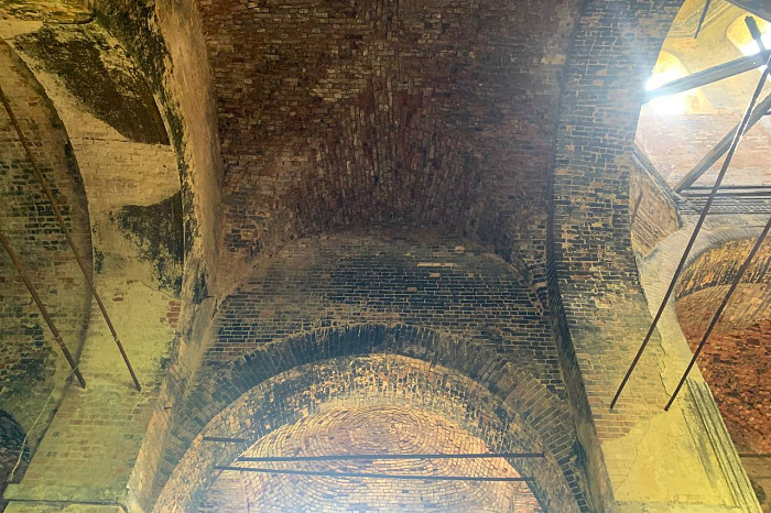 Помогали и местные жители. У себя во дворах они делали кирпич с добавлением яичной скорлупы для прочности. У Филинского пруда до сих пор сохранились ямы – оттуда местные брали материал для изготовления кирпичей.