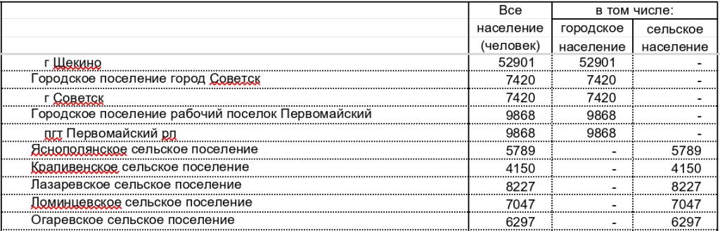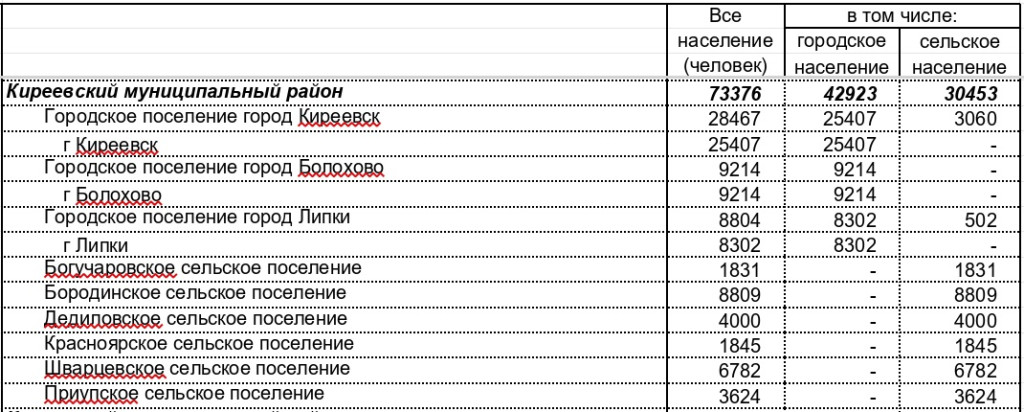 В Кимовске проживали на 1 января 26 114 человек, в МО Епифанское – 5 966, в МО Новольвовское – 6 507.