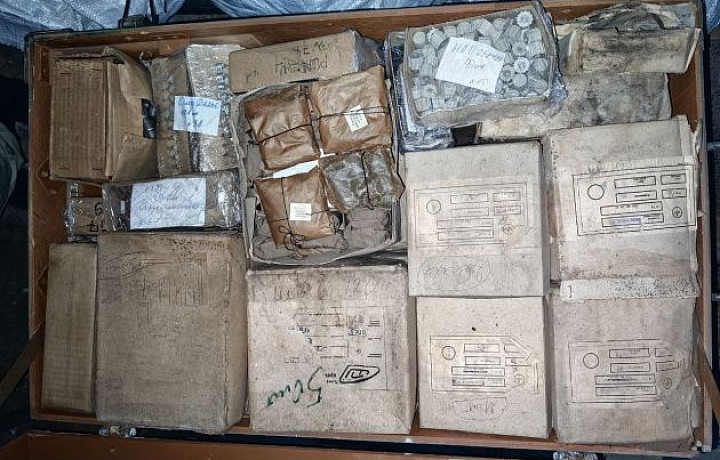 В списке 832 наименования – это генераторы, вольтметры, осциллографы, частотометры, разъемы, транзисторы, радиокомпоненты, блоки переключения, предохранители, датчики, диоды, конденсаторы, микросхемы, резисторы, трансформаторы, фонари. Судя по фото, все это имущество хранилось со времен СССР.