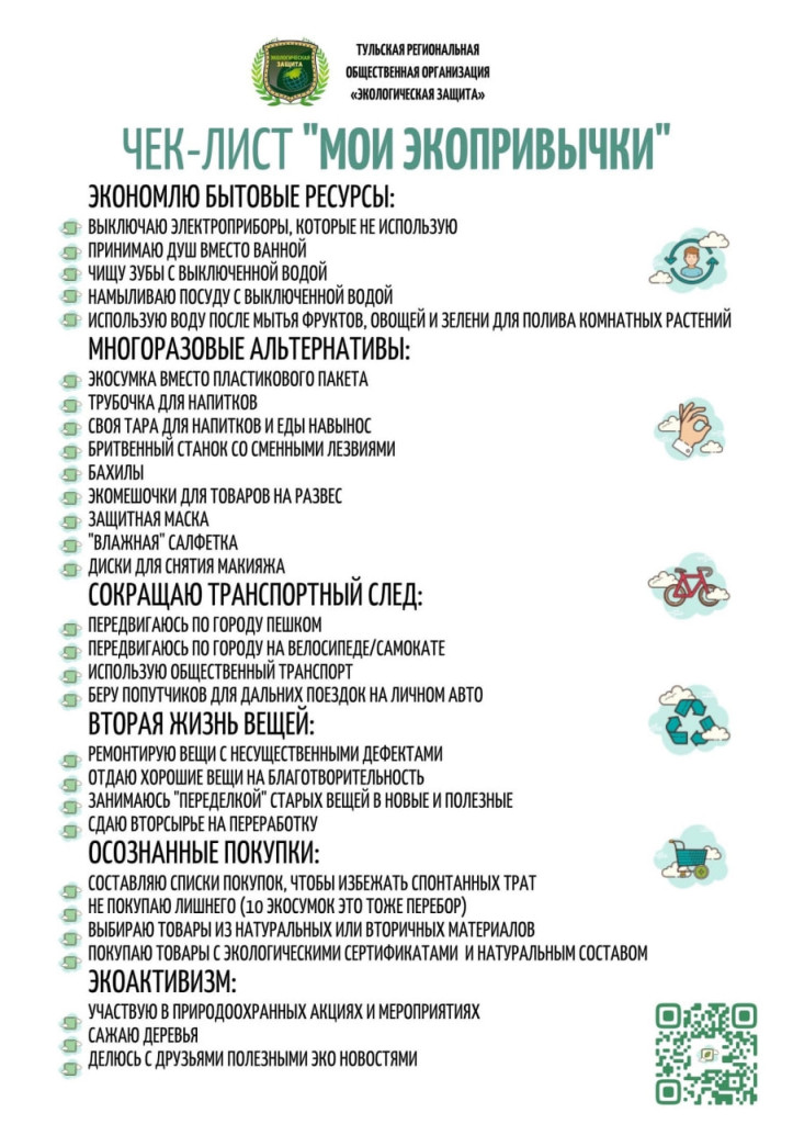 Специалисты ТРОО «Экологическая защита» составили специальный чек-лист для туляков с повседневными экопривычками, которые стоит «наматывать на ус».