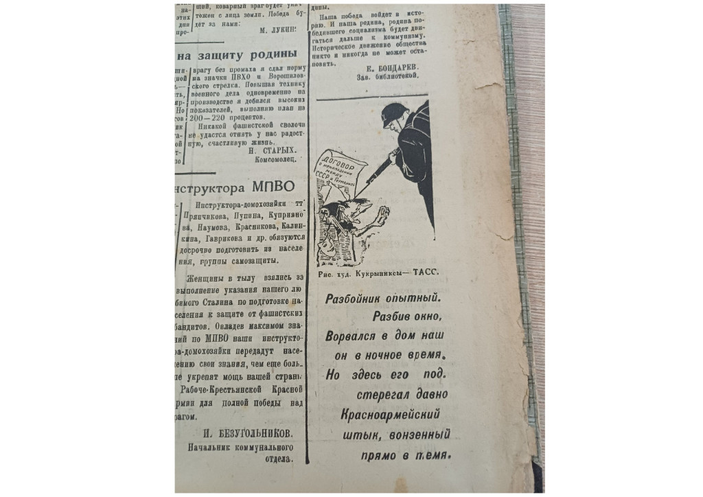 «Будем работать еще настойчивее и упорнее, чтобы наши бойцы ни в чем не чувствовали недостатка. Наш лозунг – больше военных материалов, танков, самолетов, пушек» («Коммунар», «Смерть зарвавшемуся врагу!», Сталиногорск, 24 июня)