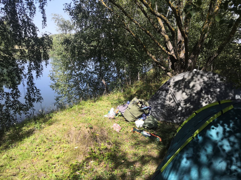 «Стараюсь вырваться на природу при любой возможности. При это всегда ездил с людьми, которые в этих вопросах более опытны или более оснащены. Так что во всех походах, можно сказать, я был ведомым, помощником. За исключением приготовления еды в казане и на мангале. А вот в прошлом году решил отправиться с товарищем уже первым номером. Посмотрел новые места, понравились Люторичи в Узловском районе – хорошие фото и отзывы. Решили ехать «на дурачка», потому что по карте было очень много мелких прудов и озер, так что место найти точно можно. Уже на месте поиск стоянки занял около 40 минут. Народу много. Приткнулись в лагерь, где отдыхали 5-6 компаний, но нам двоим место нашлось в низине прямо возле пруда», – говорит мужчина.