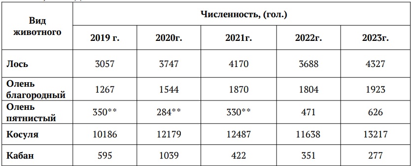 Растет в области количество лосей, косуль, благородных и пятнистых оленей. Например, лосей за пять лет стало больше почти в полтора раза. Количество пятнистых оленей за четыре года выросло более чем вдвое.