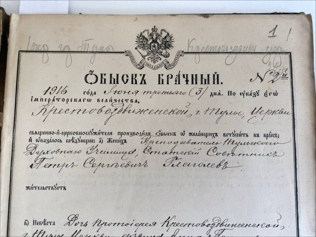 До революции 1917 года законным браком считался лишь брак, зарегистрированный в церкви, т. е. все православные молодожены должны были обвенчаться. В Государственном архиве Тульской области хранятся документы, из которых мы можем узнать, каким образом совершалась церемония бракосочетания – венчание.