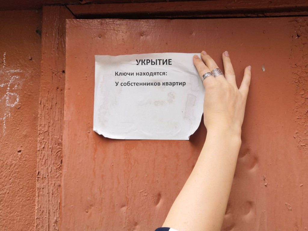 На двери подвала висит бумажная табличка, что место является укрытием. Реестр таких помещений, напомним, составляли осенью 2022 года. Жители до сих пор считают, что их подвал входит в перечень официальных укрытий.