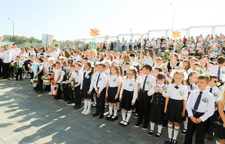 Здесь прошла торжественная линейка, которую посетили врио губернатора региона Дмитрий Миляев и глава администрации города Илья Беспалов.