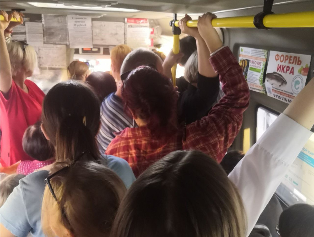 «Обычная» маршрутка по утрам, говорят жители, недоступна уже на остановке «улица Кауля».«Ездит два больших автобуса, один новый полуавтобус-полумаршрутка. Он неудобный – мест мало, на передней площадке всегда столпотворение. Большие автобусы – удобно, но уже второго сентября вечером в него в центре сесть было нереально. Не забываем, конечно, и про сумочку или швабру, которая охраняет переднее место рядом с водителем», – жалуется горожанин.