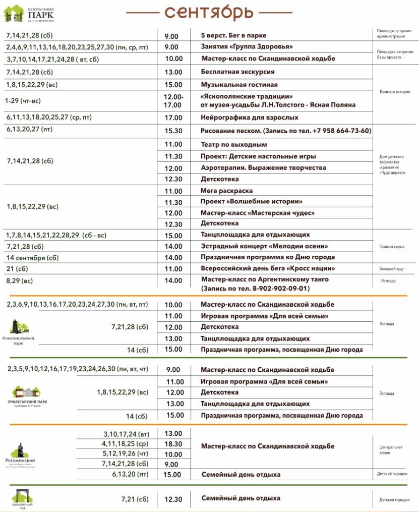 В сентябре посетителей Тульских парков ждут мастер-классы, забеги, танцы, рисование и семейные дни. Подробнее в афише. 18+