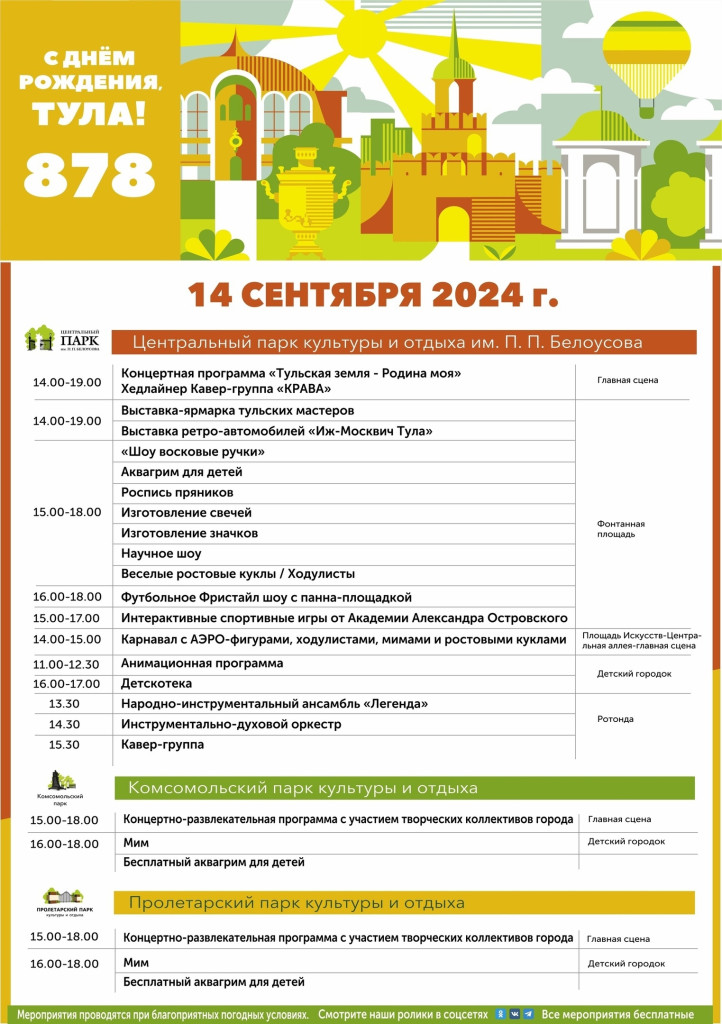 День города, Театральный дворик, Авто фест: как провести выходные в Туле – афиша на 14 и 15 сентября