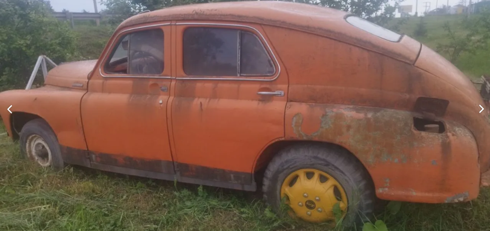 Продолжает наш список машина, которая, судя по внешнему виду, скоро перейдёт из разряда «ретро» в разряд «античные». Но прогресс налицо – внутри есть салон и двигатель. Продавец позиционирует авто как «отличный вариант под восстановление», так как это настоящий раритет. Автомобиль не битый, с почти 70 000 километров проката. К сожалению, документов на данный товар нет.