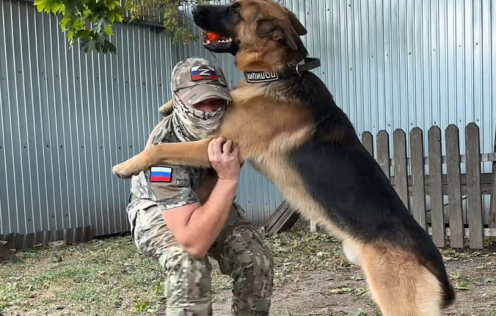 В Туле героический пес Байкал встретился со своим хозяином, с которым нес службу на спецоперации на Украине. Собака уже больше месяца восстанавливается в Центре кинологической службы тульского УМВД.