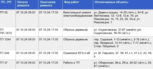 Уточняется, что отключение света связано с необходимостью проведения текущего ремонта электрооборудования.
