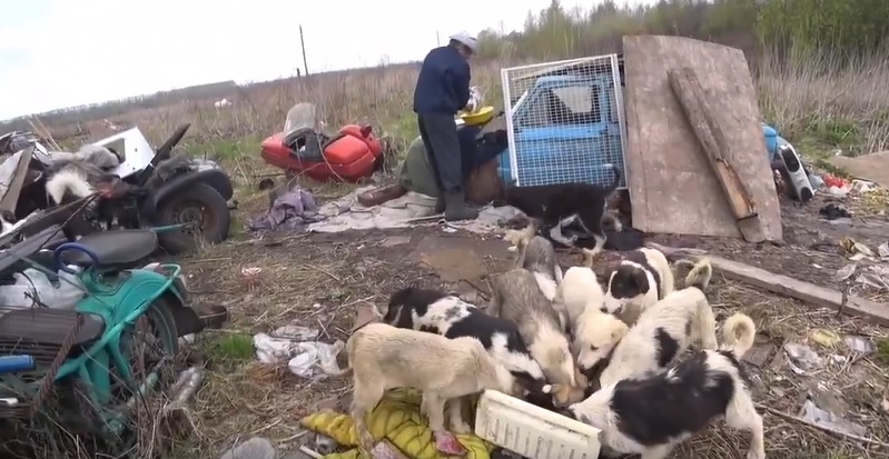 Блогер поинтересовался, не выгоняют ли мужчину с этих места?«Плохая весна в этом году. Собаки жрут-жрут, жрут-жрут, жрут-жрут. Кормишь их и кормишь, кормишь и кормишь. А толку нет никакого. Холод, солнца нет. Туда дальше не надо ходить, там сука со щенками», – предупреждает гостей мужчина.