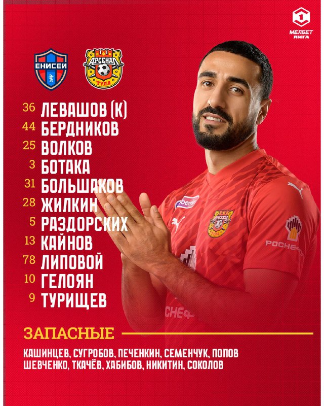 Начало игры в 10:00. «Арсенал» занимает шестое место, набрав 30 очков, «Енисей» — десятый, у команды из Красноярска 24 очка.