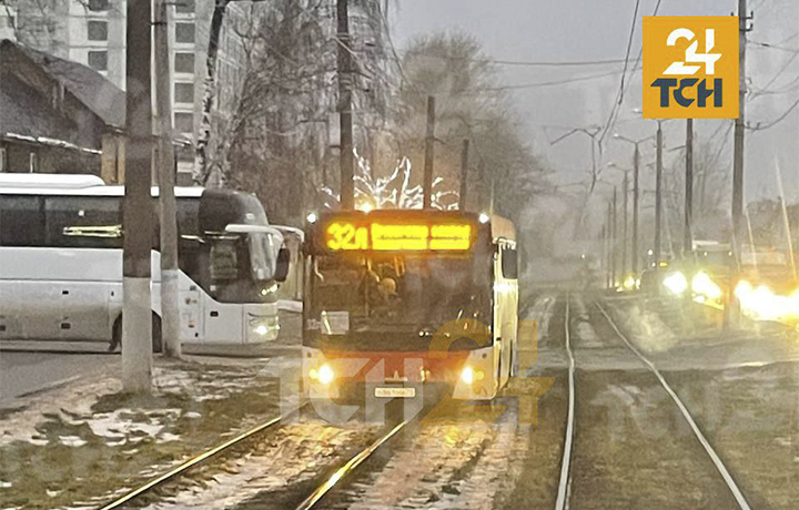 По предварительным данным, водитель автобуса по непонятной причине выехал на трамвайные пути и застрял. Из-за происшествия затруднено трамвайное движение.
